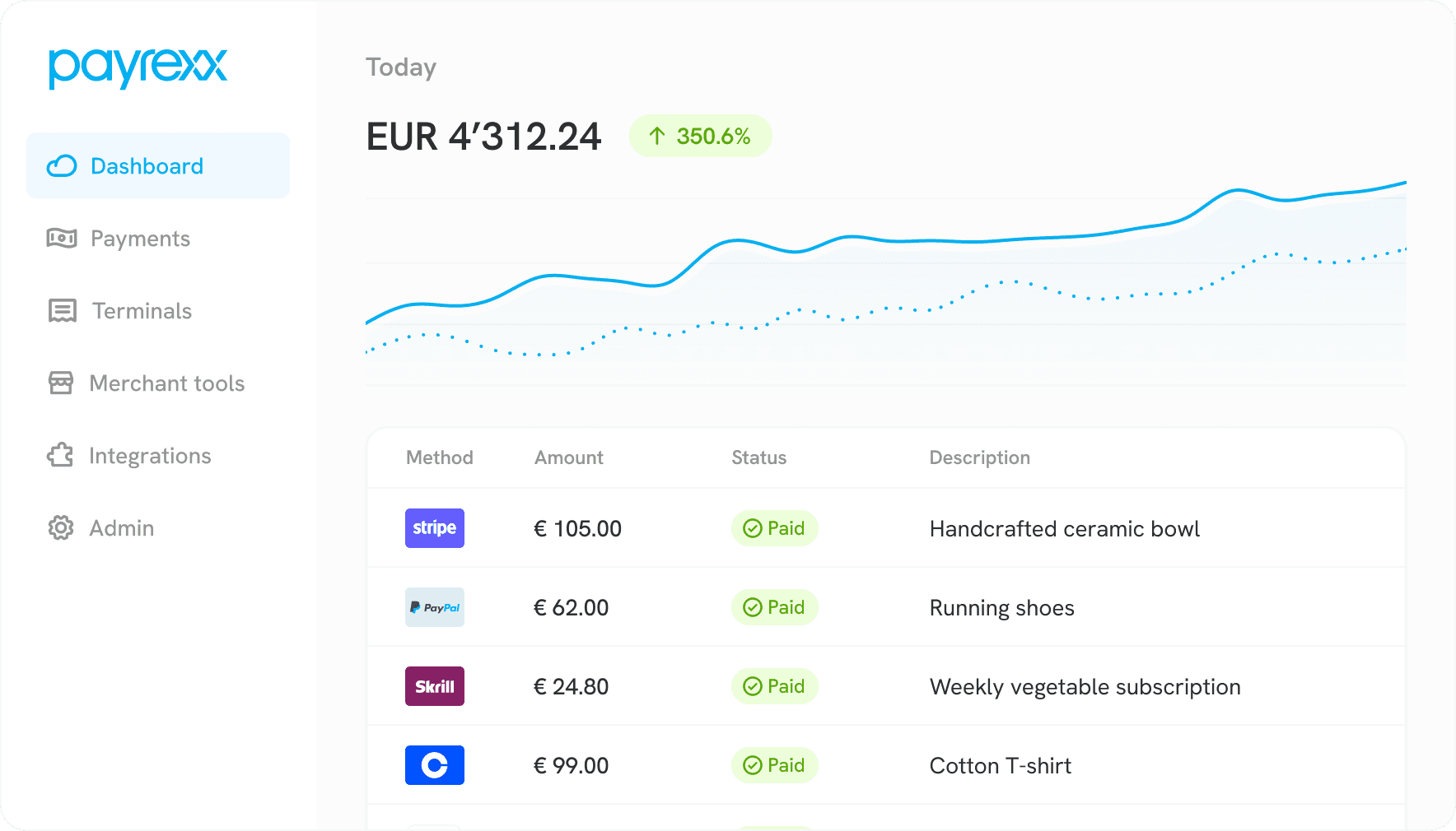 At Payrexx, all transaction fees are fully included in a single contract, with no hidden costs. This means you only pay the clearly stated fees to Payrexx, without requiring additional contracts or fees with other providers.