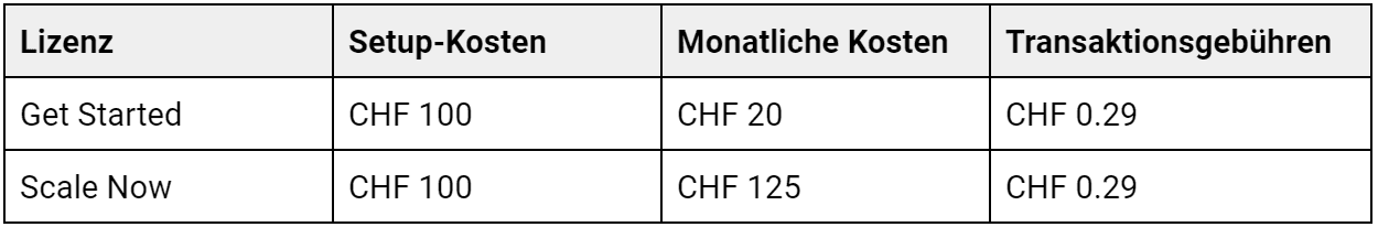 Monatliche Kosten bei einem Umsatz von CHF 100’000 (ohne Setup)