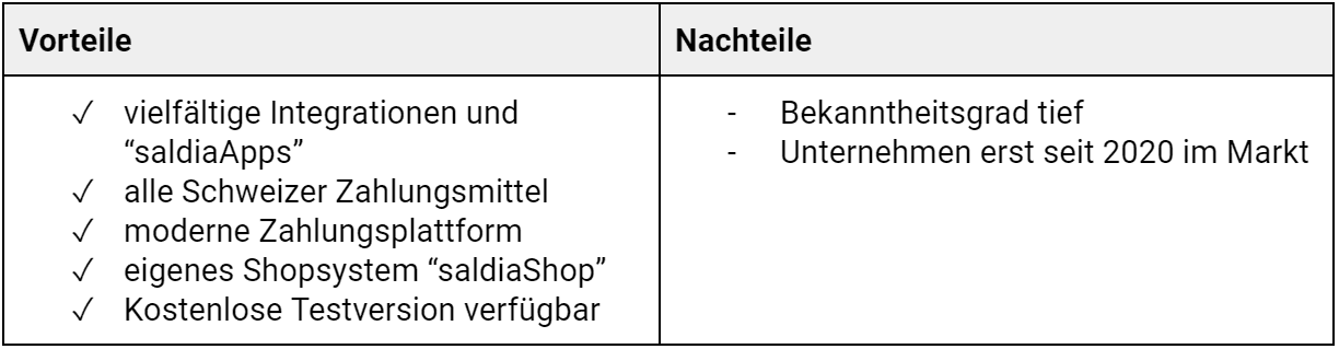 SaldiaPay ist ein Schweizer Zahlungsanbieter, der digitale Zahlungslösungen für Unternehmen anbietet. Sie ermöglichen die Abwicklung von Kreditkartenzahlungen, akzeptieren digitale Geldbörsen und bieten sichere, benutzerfreundliche Zahlungsdienste. saldia bietet vielfältige Lösungen wie Onlinezahlungen, Onlineshops oder Logistikdienstleistungen und erarbeitet sich so in verschiedenen Branchen einen guten Ruf.