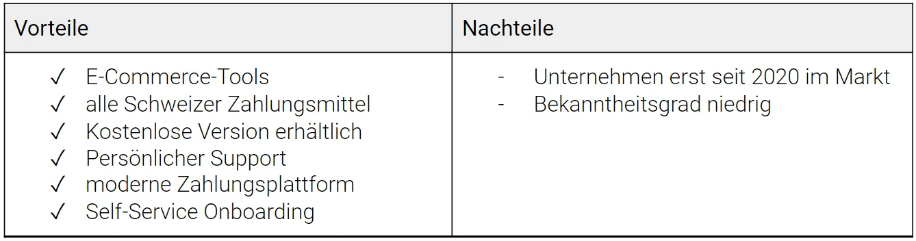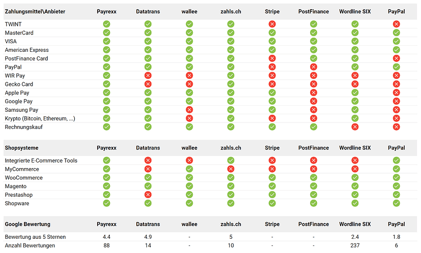 Natürlich sind nicht nur die Preise zu beachten, sondern auch der Funktionsumfang und unterstützende Dienstleistungen. Die vielfältigsten und nützlichsten Tools bieten Payrexx und zahls.ch.