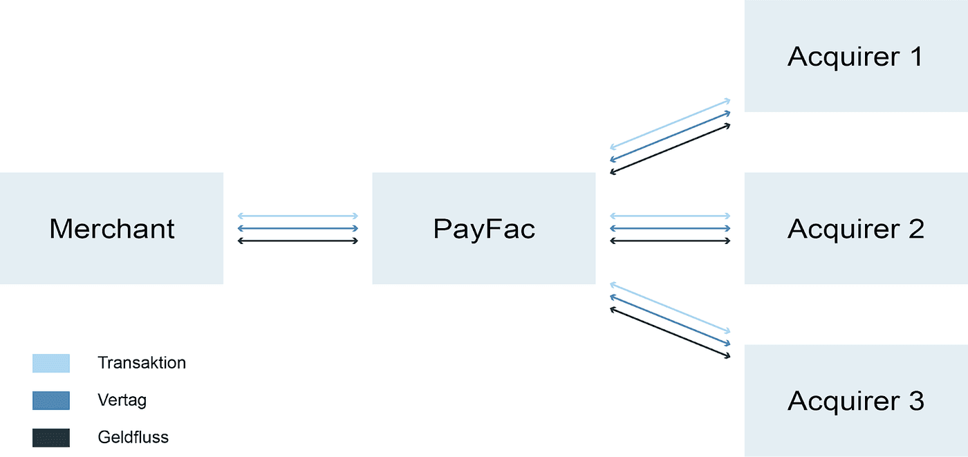 Ein Payment Facilitator, auch Collecting PSP genannt, steht in unmittelbarem Kontakt zum Händler und verwaltet das Händlerkonto beim Acquirer. Der Payment Facilitator kann also den Akzeptanzvertrag im Namen des Acquirers unterzeichnen und erleichtert so die Einrichtung von Online-Zahlungen, weil der Händler weniger direkte Beziehungen pflegen muss.