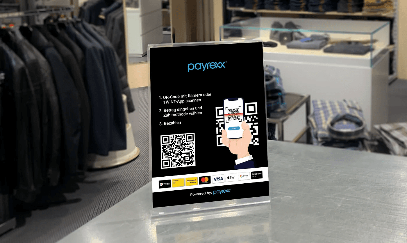Mit einem Zahlungsanbieter wie Payrexx können Unternehmen ihr Smartphone in ein POS-Terminal verwandeln und Zahlungen annehmen, ohne in Hardware zu investieren. Die QR-Codes können auch ausgedruckt und vor Ort verwendet oder aufgestellt werden.