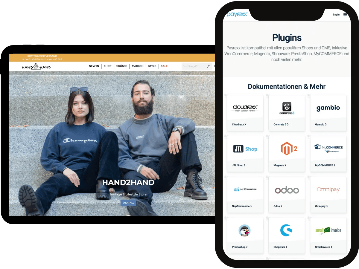 Via API erfolgt die Integration des Zahlungsdienstleisters Payrexx ganz einfach an den Onlineshop von Hand2Hand. Die Plugins von Payrexx werden stetig verbessert und ermöglichen die Integration mit allen populären Shops und CMS.