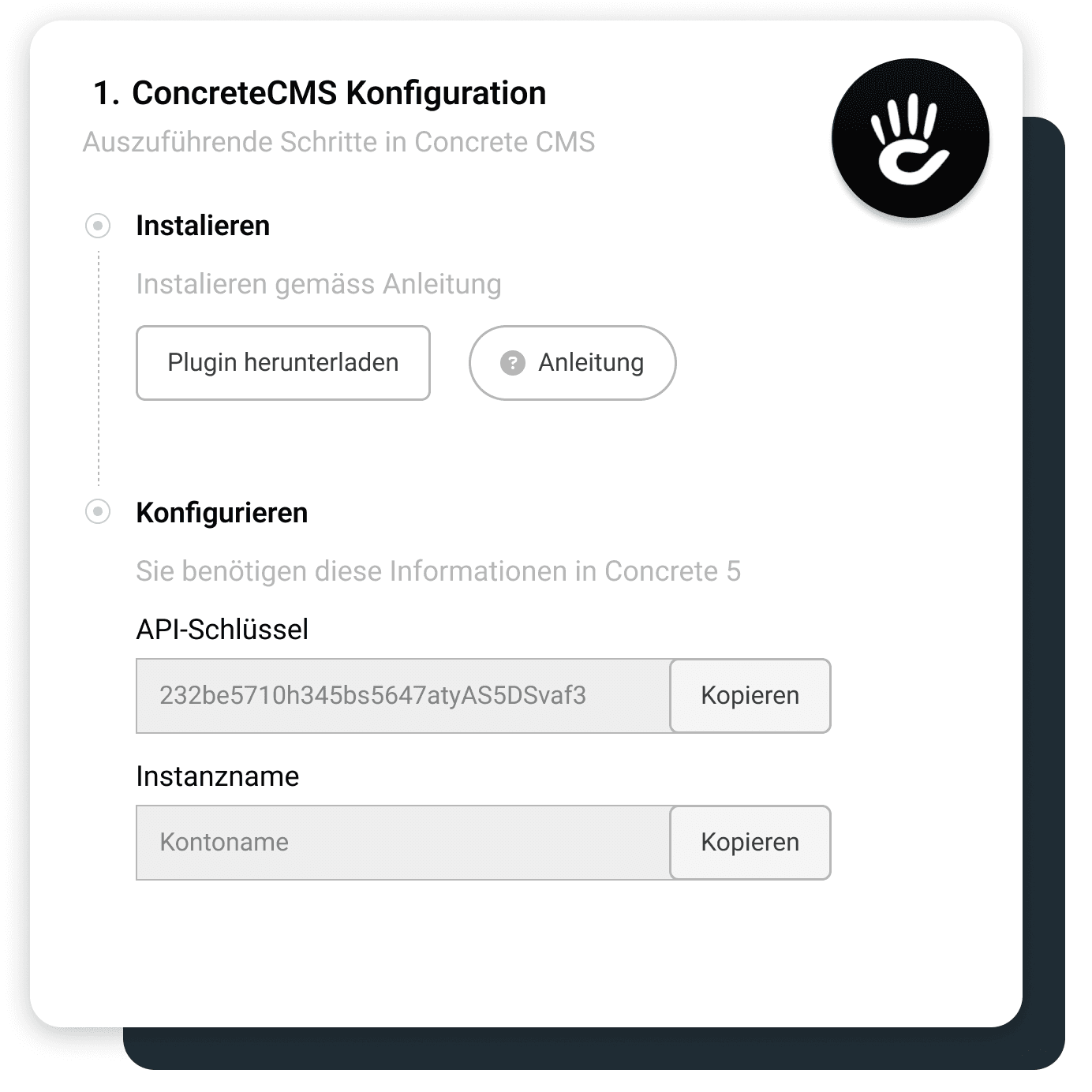 Die Integration ist einfach. Folge einfach unserer Schritt-für-Schritt-Anleitung in der Dokumentation, um das Plugin in Deinem Concrete5-Shop zu installieren.