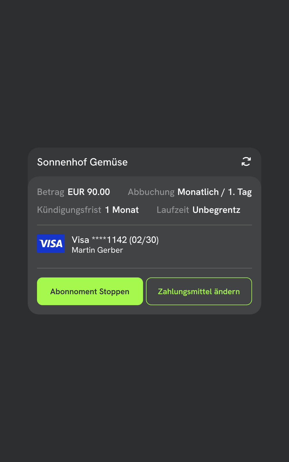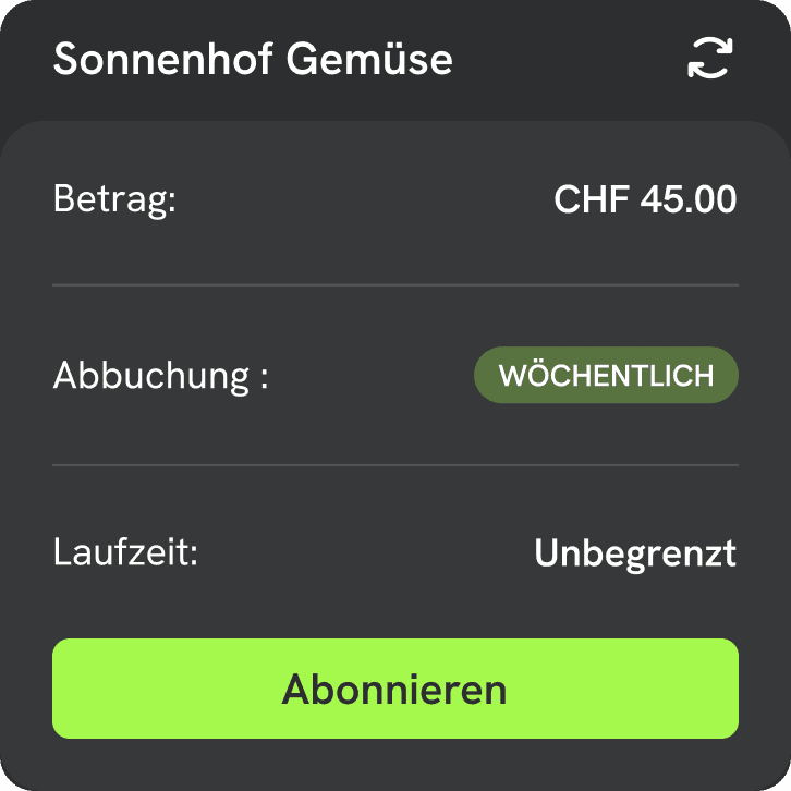 Empfange wiederkehrende Zahlungen von Deinen Kund:innen. Ideal, um Abonnements anzubieten oder regelmäßige Spenden zu erhalten.