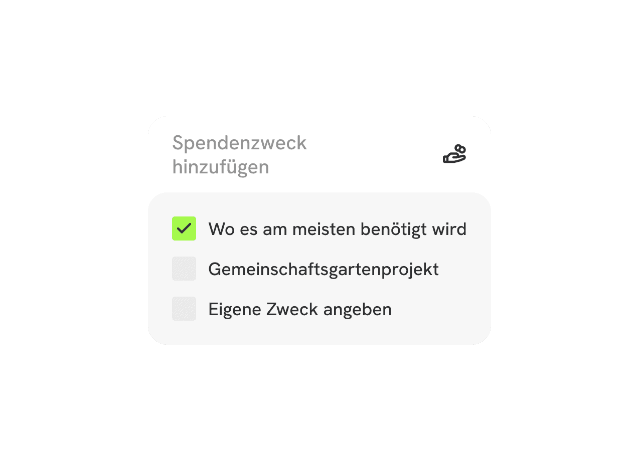 Du hast die Möglichkeit, Deinem Spendenformular verschiedene Spendenzwecke hinzuzufügen oder ein leeres Feld zu hinterlegen, in dem der gewünschte Verwendungszweck eingetragen werden kann. So können Deine Unterstützer:innen selbst entscheiden, wofür ihre Spende eingesetzt wird.