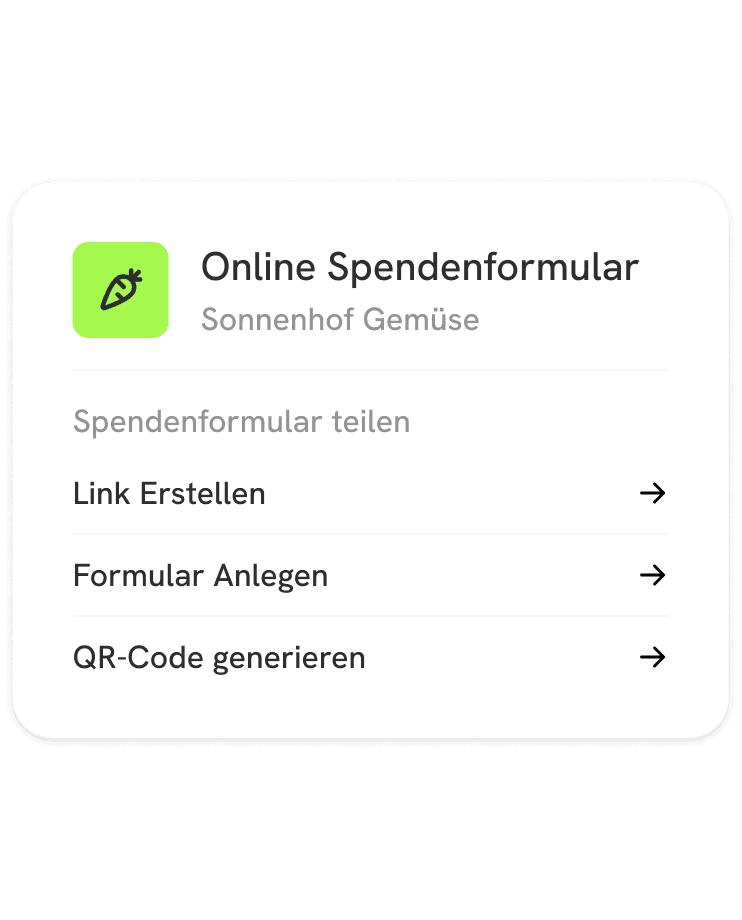 Du kannst Spendeformulare erstellen, aber auch QR-Zahlungscodes und digitale Rechnungen erstellen, Zahlungslinks versenden und vieles mehr.