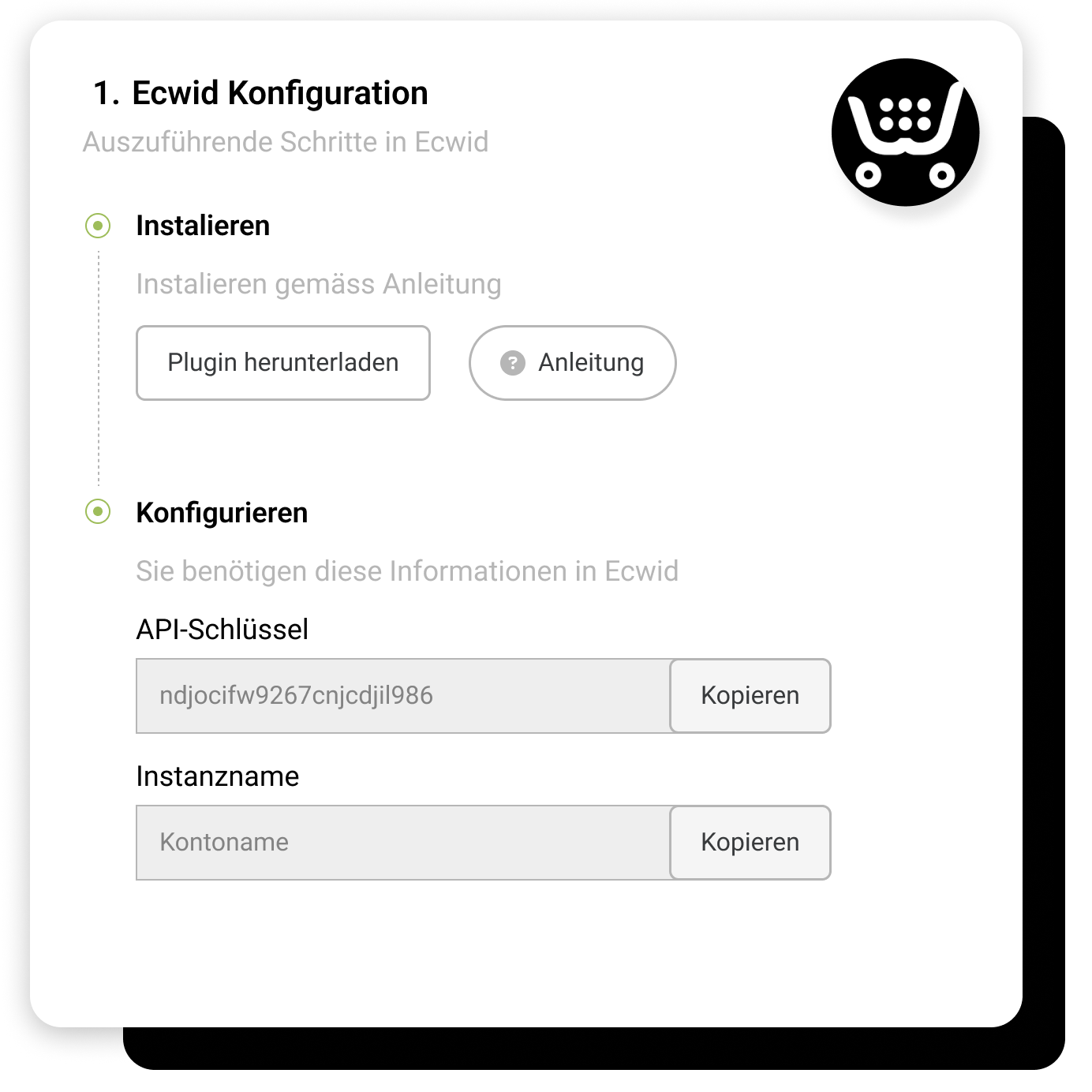 Die Integration ist einfach. Folge einfach unserer Schritt-für-Schritt-Anleitung in der Dokumentation, um das Plugin in Deinem Ecwid-Shop zu installieren.