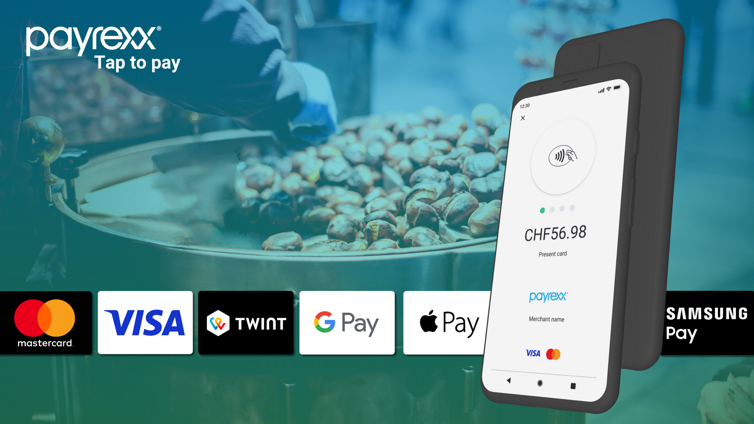 Back to your chestnut stand at the weekly market: the queue is long, the atmosphere is cozy, the smell of freshly roasted chestnuts is in the air. A customer pulls out her card, briefly holds it up to your smartphone - and the payment is complete! No counting coins, no lugging around an expensive terminal, just sell your hot chestnuts in peace. Perfect.