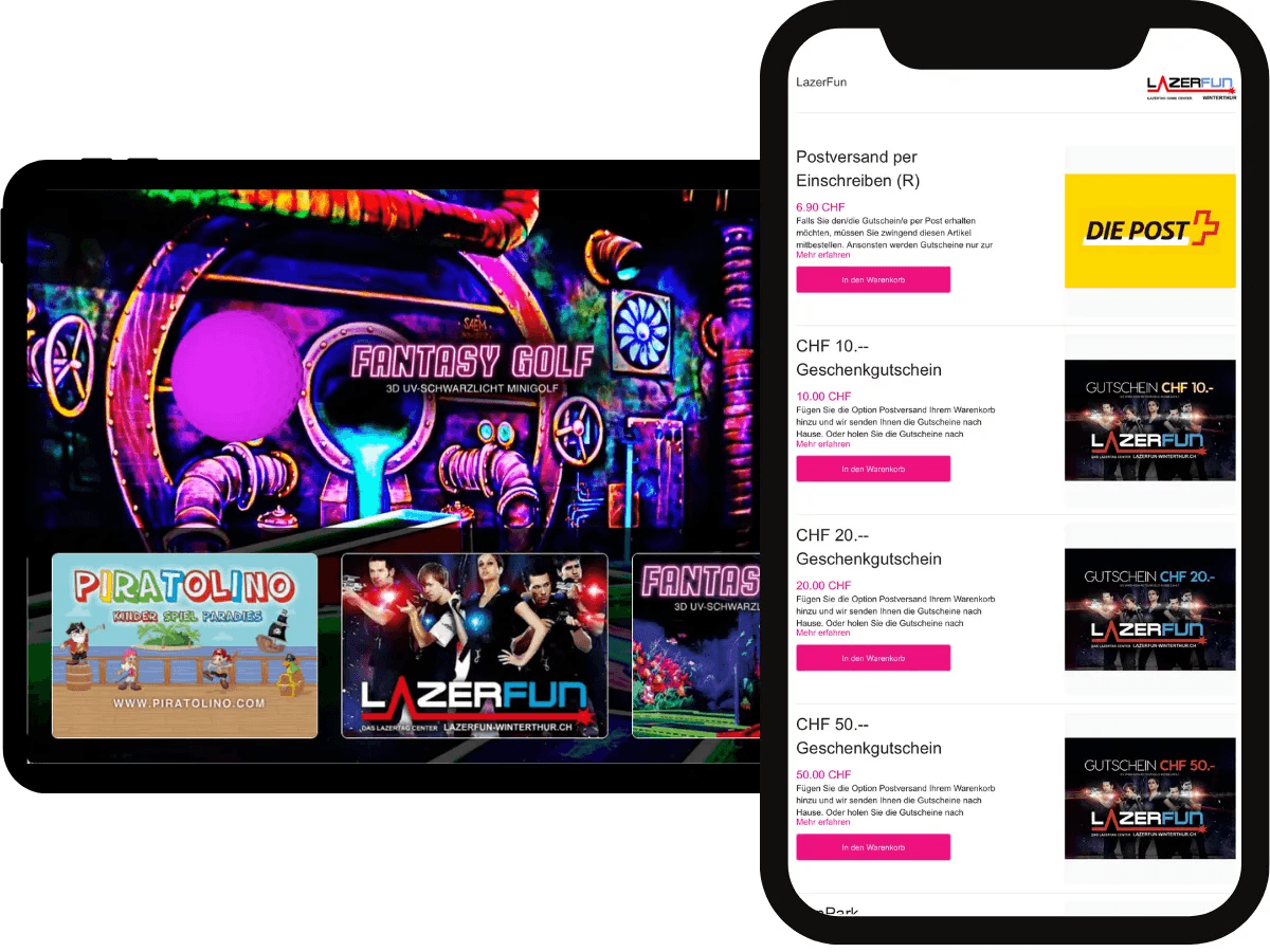 L'outil de boutique en ligne Payrexx Pages jouit d'une grande popularité parmi les commerçants Payrexx. Différentes entreprises et commerces utilisent cet outil pour proposer leurs produits et services en ligne. Parmi eux se trouve également le Funpark Winterthur.