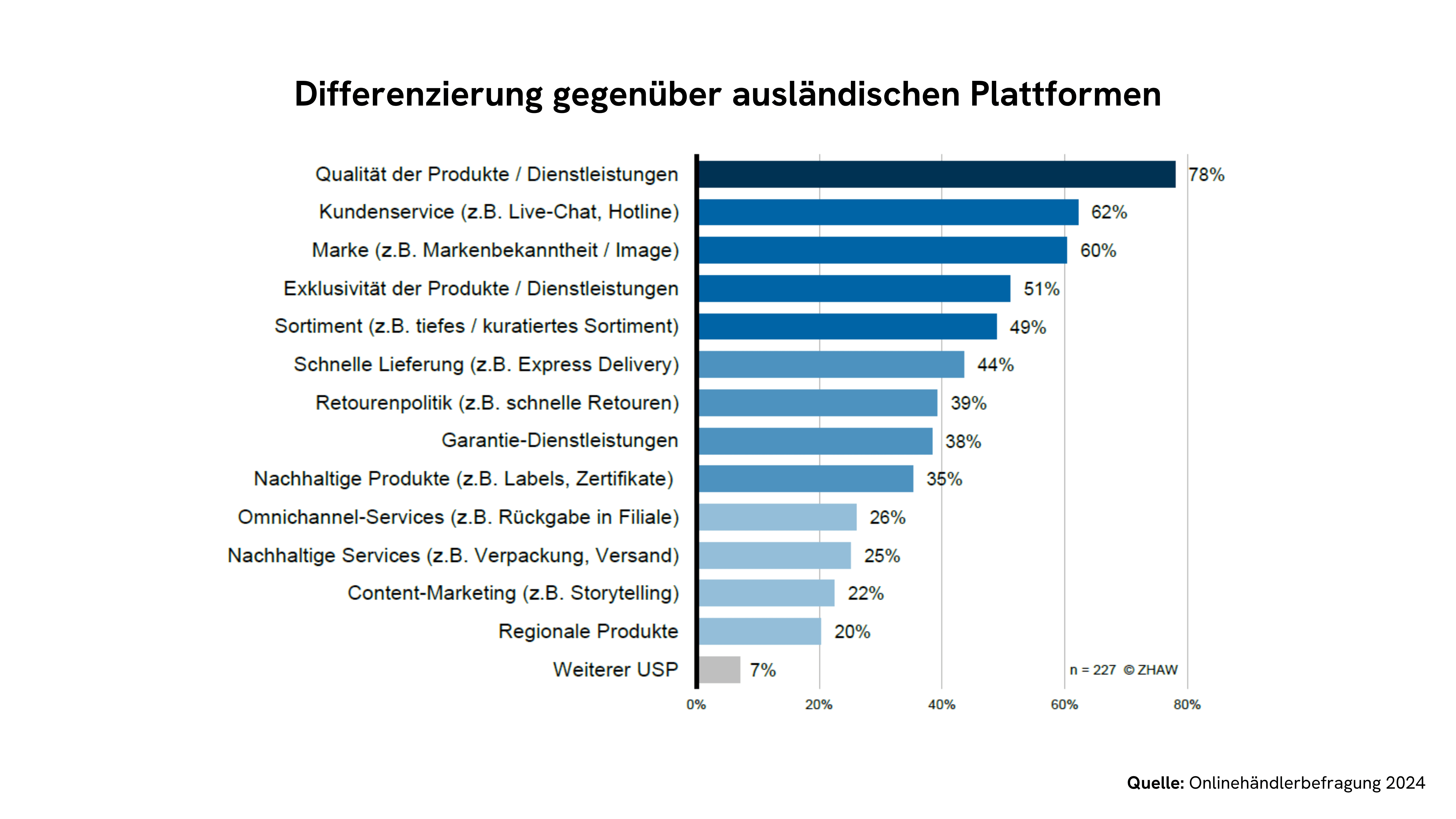 Die Onlinehändlerbefragung 2024 zählt eine Vielzahl an möglichen USPs (Unique Selling Propositions) auf, durch welche sich Schweizer KMU abheben können.